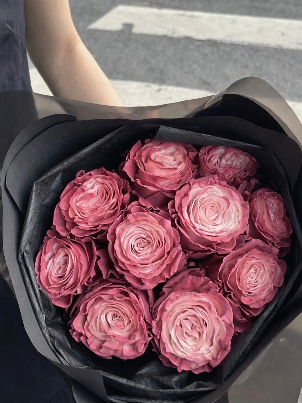 10 Stems of premiun Ecuadorian Mauve Rose in Red Wrapping