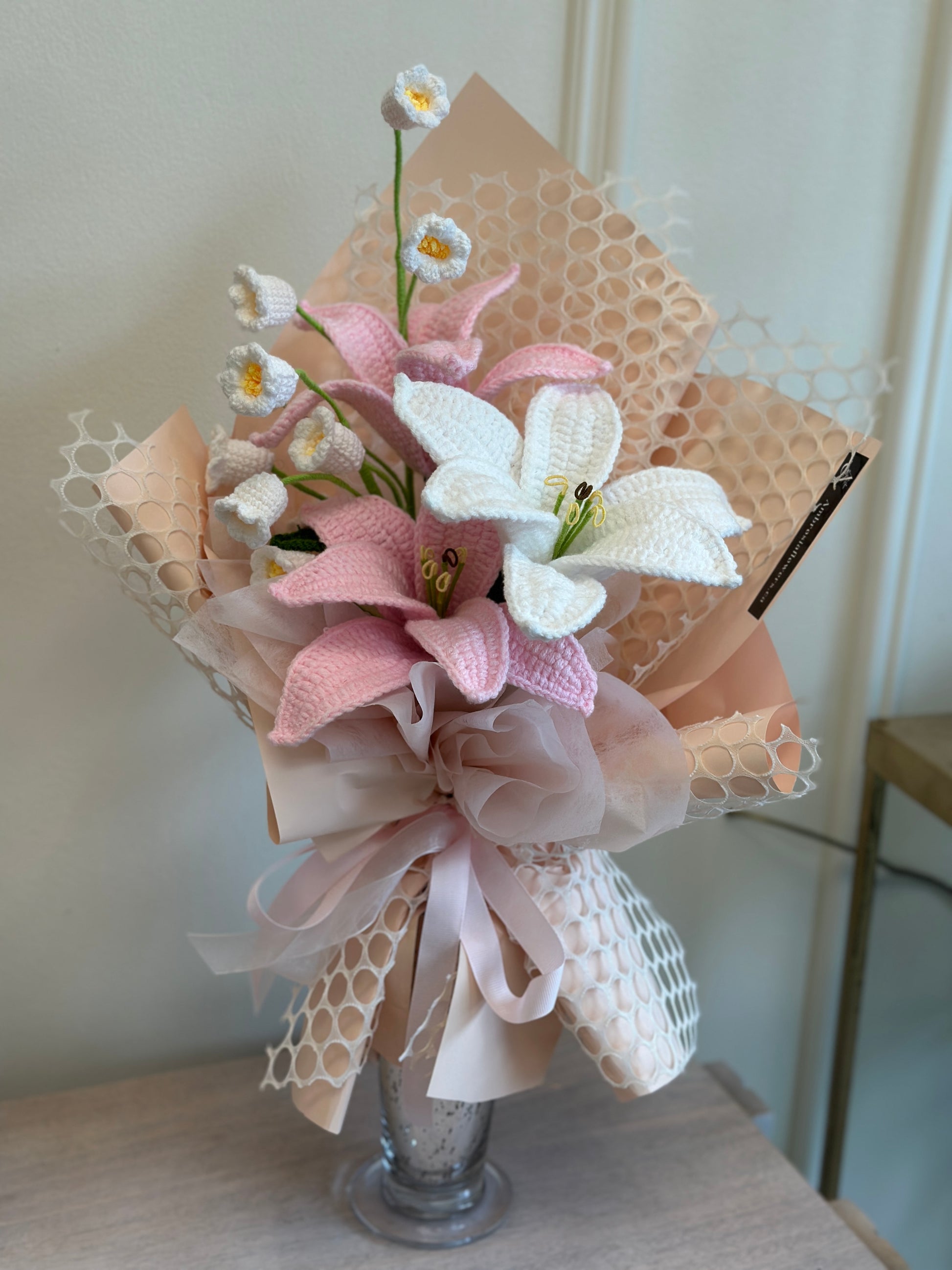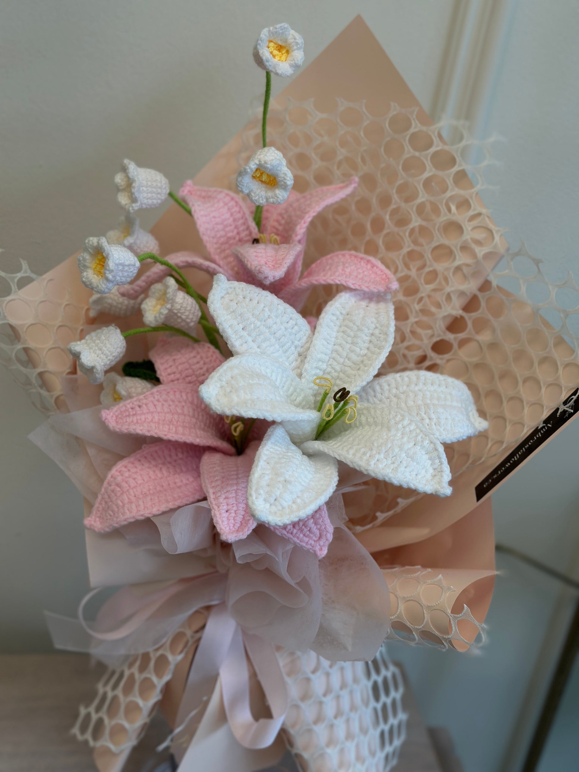 Elevate your decor with this handcrafted crochet lily bouquet, a timeless floral arrangement that combines artistry and elegance.